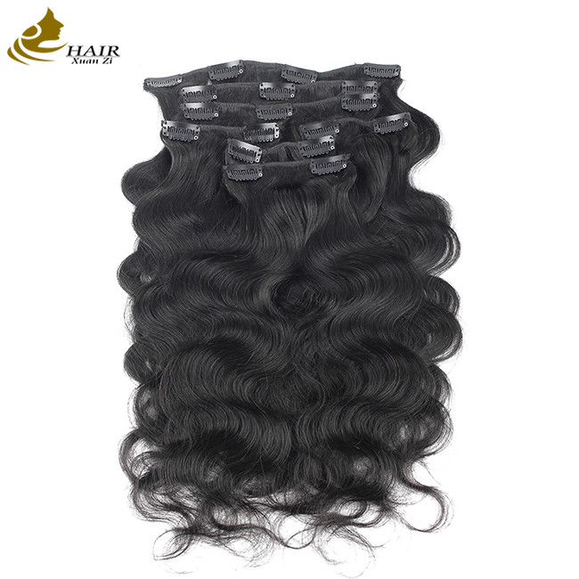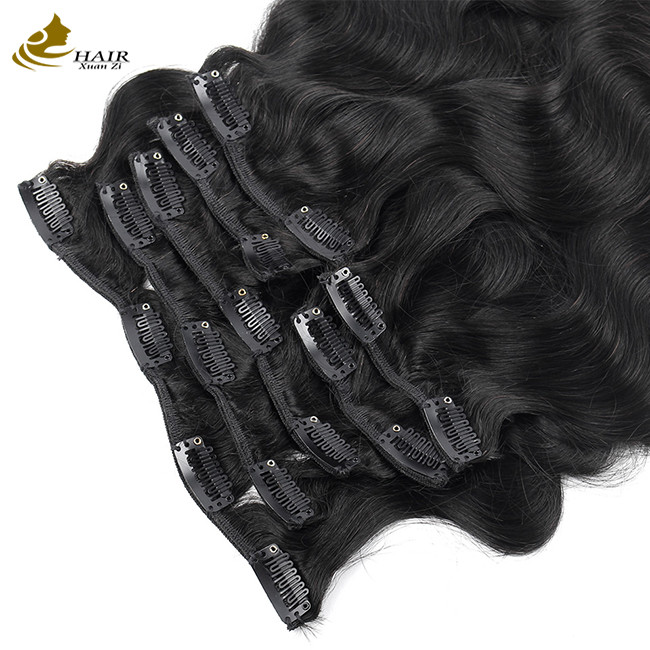 | ชื่อสินค้า | ขายปลีก สีธรรมชาติ สีดํา บราซิล Remy หัวผมมนุษย์ ร่างกายคลื่น Clip ใน Hair Extensions |